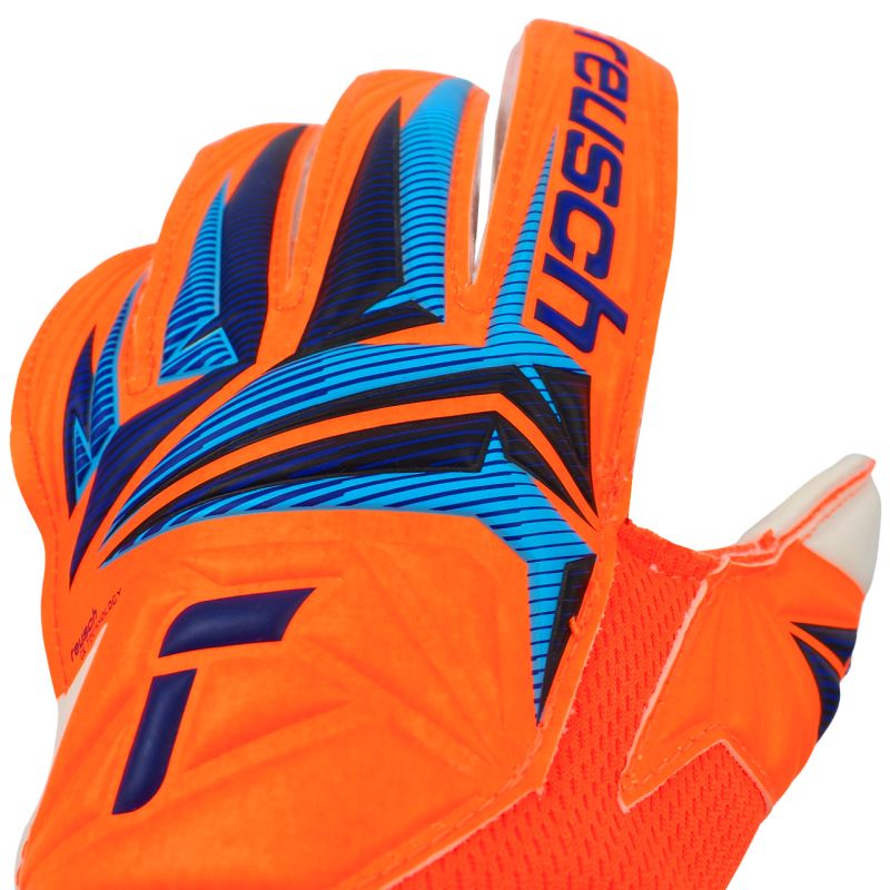 Reusch Attrakt Advance Junior Goalkeeper Gloves, Orange 5672214 2290. These Reusch goalkeeper gloves for kids and youth are perfect for both training and matches. The palm is made of Reusch Grip Advance latex, providing a secure grip and abrasion resistance. The Punch Foam lining increases durability and improves shock absorption. Technical data: Expanse Cut - a cut best known for its external seams and wider fingertips, which are responsible for increasing the glove's gripping surface. Thumbflex™ - special material inserts increase the flexibility and mobility of the thumb, in which the glove is held. Elastic Cuff - an elastic cuff ensures a comfortable fit. Full Strap - a fastening system around the entire wrist for maximum stability and comfort.