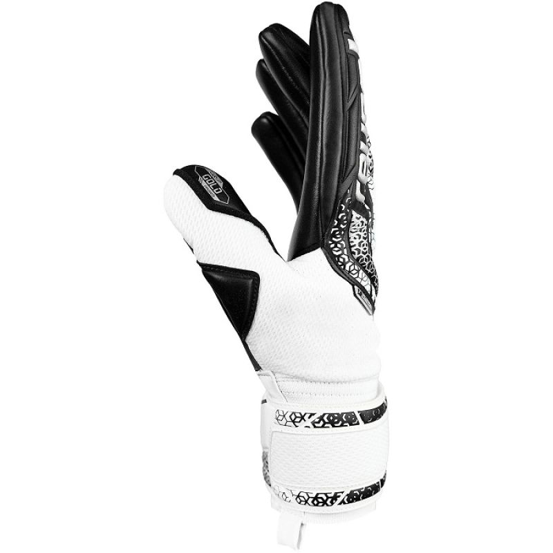 The new generation of Attrakt Gold NC foam is based on high-quality Reusch Gold latex. This advanced latex formula, used in professional matches, guarantees excellent grip on both dry and wet surfaces while maintaining reliable durability. The high percentage of natural latex in the composition provides exceptional grip properties, translating into uncompromising performance on the pitch. The glove's ergonomic design not only ensures maximum comfort thanks to the snug Negative Cut but also stability thanks to the elastic cuff with a full strap. This combination of technology and precision craftsmanship makes the Attrakt Gold NC gloves the perfect choice for ambitious goalkeepers who demand the highest quality and performance during play.