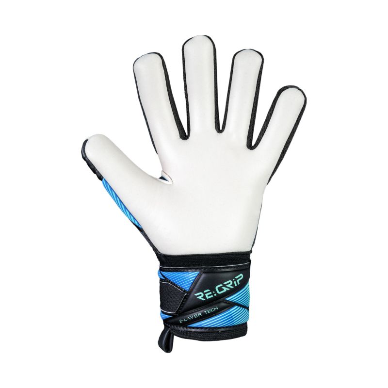 Reusch Attrakt RE:Grip NC Junior Goalkeeper Gloves Black and Blue 5672535 7272 Reusch kids' goalkeeper gloves significantly contribute to excellent reflexes, coordination, and agility. They are the first choice of most professional goalkeepers. The snug Evolution Negative Cut provides an ergonomic fit. The cuff is adjustable with a full-length Velcro strap. Strategically placed fabric inserts. These gloves provide comfort in all conditions, wet and dry. Specifications: Material: 34% polyester, 35% polyvinyl chloride, 25% latex, 3% polyurethane, 2% rubber, 1% cotton Negative Cut – a cut with internal seams on the lower fingers that provides a tight, soft, flexible, and ergonomic fit. The latex is wrapped around the fingertips, providing a tight fit, good ball control, and maximum hand-to-ball contact area. RE:GRIP – two layers of latex of different qualities guarantee excellent grip and extended life. When the first layer of latex is worn out, the durable, highly abrasion-resistant Infinity latex underneath allows for continued use. Preshaped Construction – the anatomical shape of the glove and slightly spread fingers increase comfort and support a natural catching position. AirVentSystem™ – a highly breathable mesh material ensures optimal air circulation within the glove, ensuring maximum hand ventilation. 3D Thumb Crotch System – a wrapped panel between the thumb and index finger significantly improves comfort.
