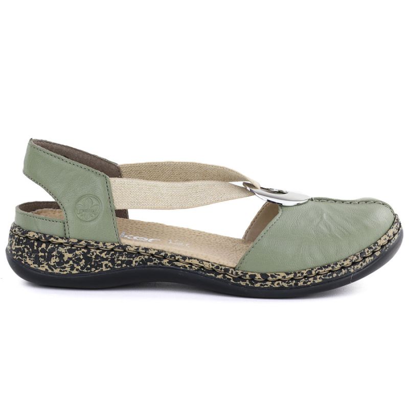 Rieker 46461-52 Green Leather Closed-Toe Sandals