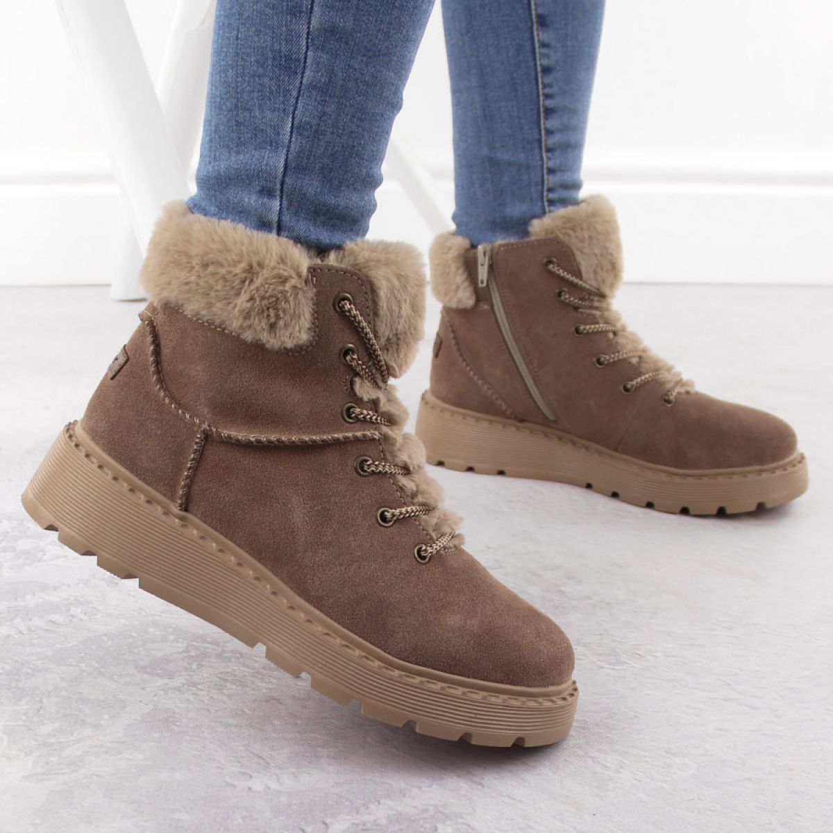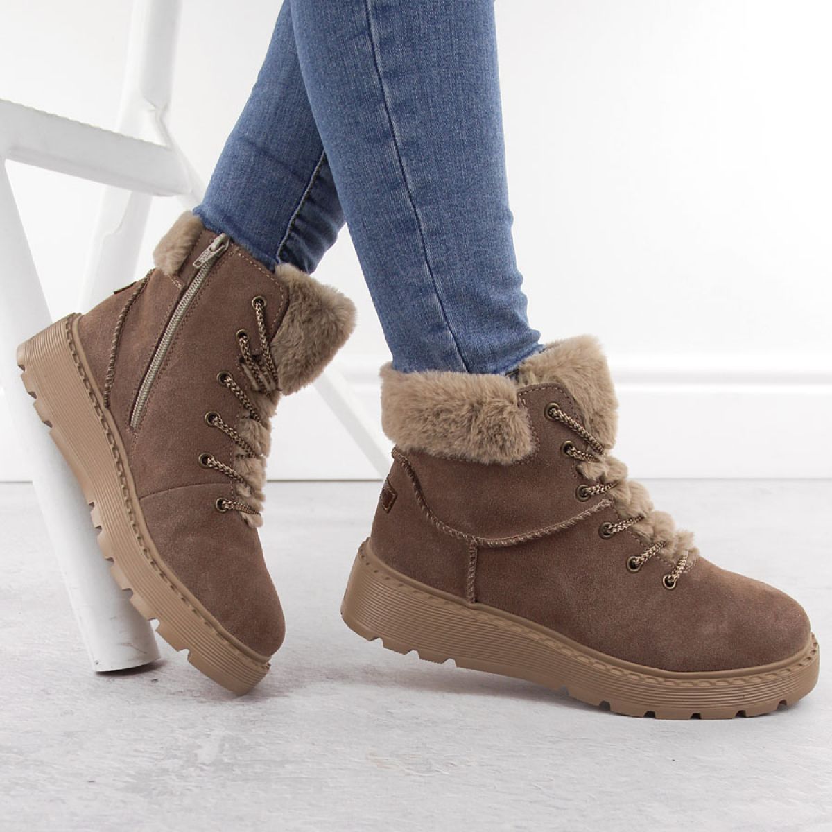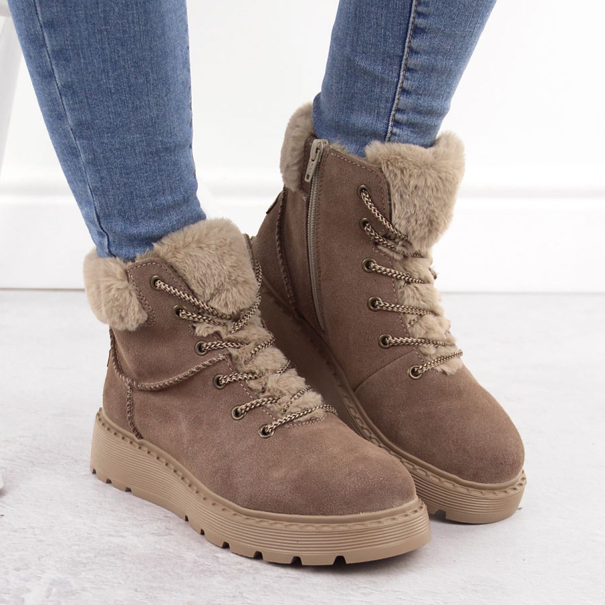 - Leather with fur on the platform