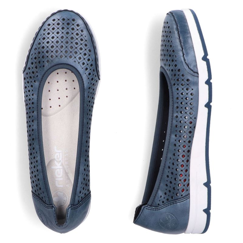 Rieker L3065-14 women's comfortable openwork blue ballet flats