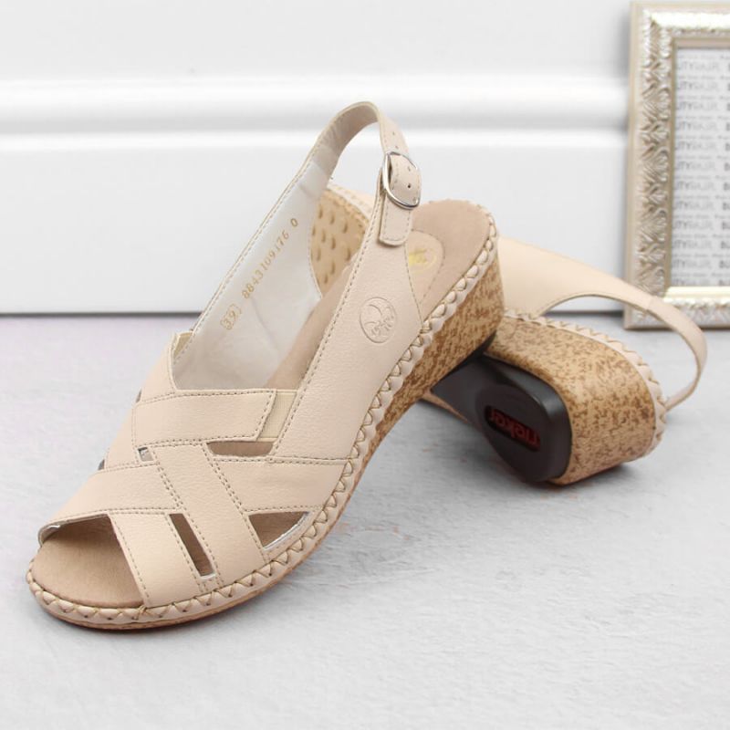 Rieker W RKR682 comfortable leather sandals beige