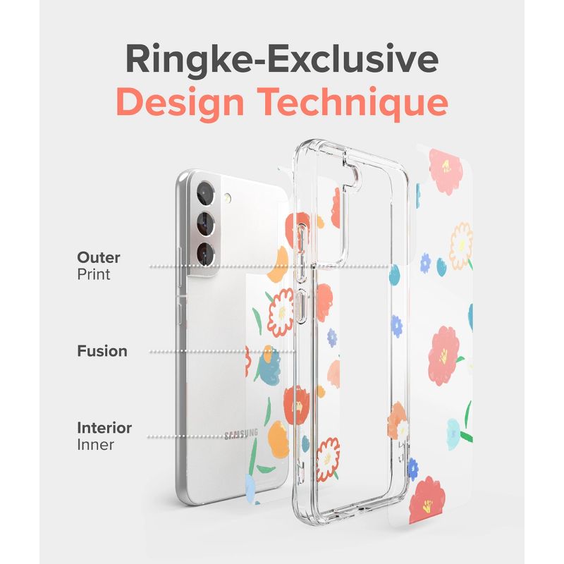 Ringke Fusion Design Armored Case Cover with Gel Frame for Samsung Galaxy S22 + (S22 Plus) transparent (Floral) (F593R31)