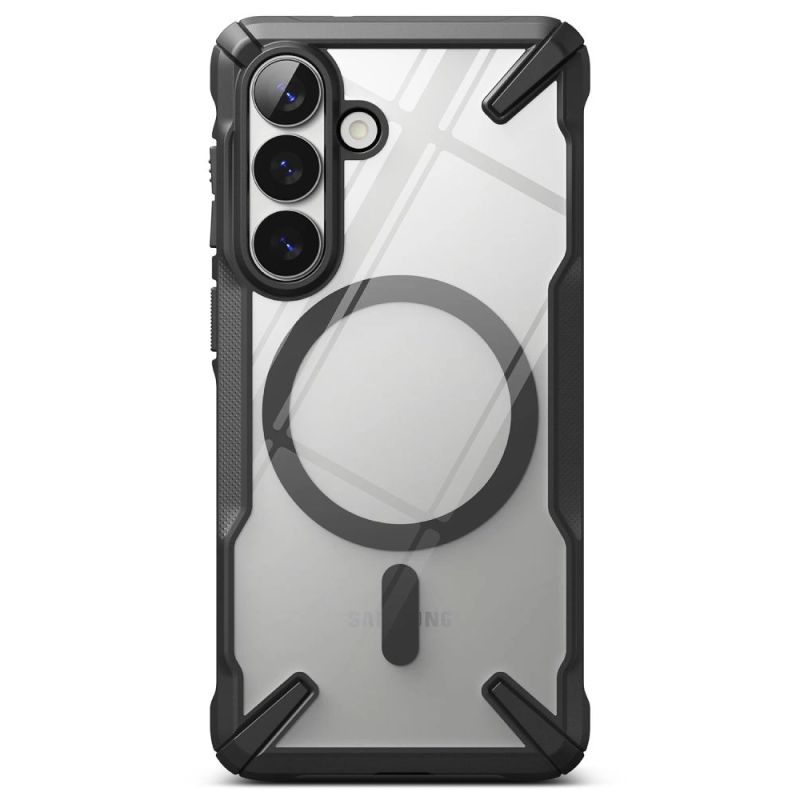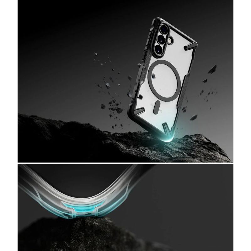 The Ringke Fusion X Magnetic MagSafe is a reinforced hybrid case that combines maximum protection with MagSafe functionality. Made of two layers – flexible thermopolyurethane (TPU) and hard polycarbonate (PC) – it provides effective protection against drops and damage. A built-in magnetic ring allows for stable attachment of MagSafe accessories and fast wireless charging. The black frame contrasts with the transparent back, creating a sporty look and highlighting the phone's unique design.