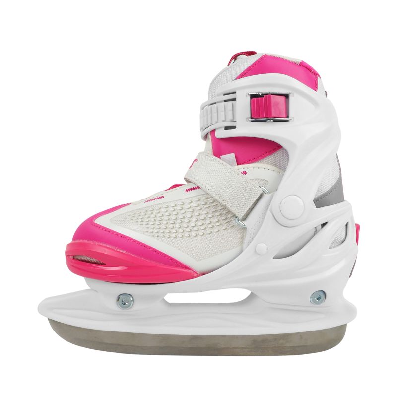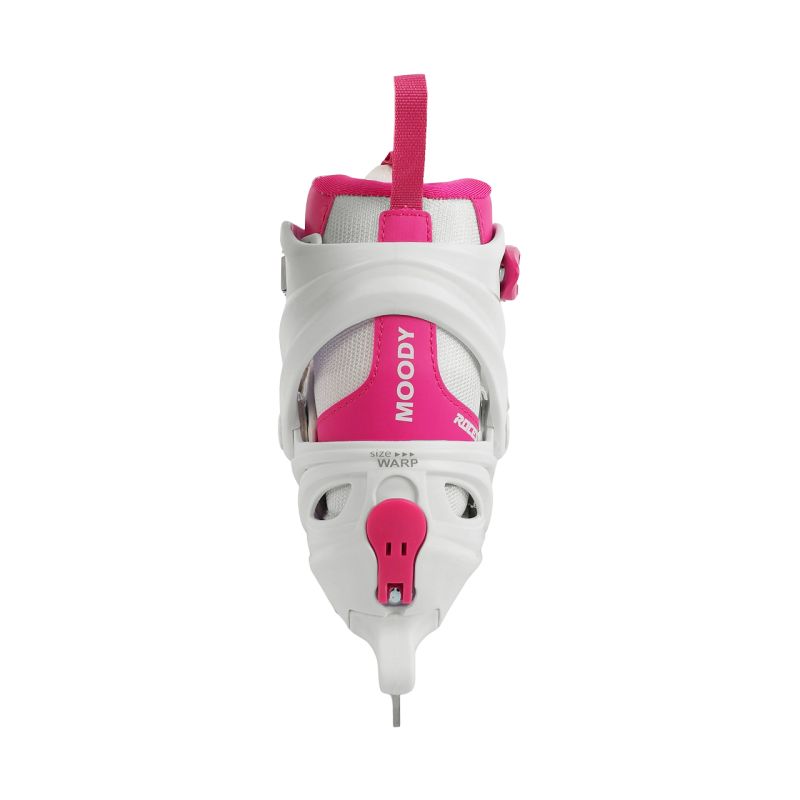 Roces Moody Ice X Ice Skates White and Pink 450744 001 Girls' ice hockey skates with adjustable size. Anatomical, thermally insulated liner. Lace closure, Velcro, and Memory Buckle, which allows for fastening and unfastening without having to re-adjust the strap length each time. Polypropylene shell. Stainless steel hockey blade. Specifications: Shell: QH Polypropylene 3-step closure (Memory Buckle, laces, Velcro) Size adjustment Stainless steel hockey blade