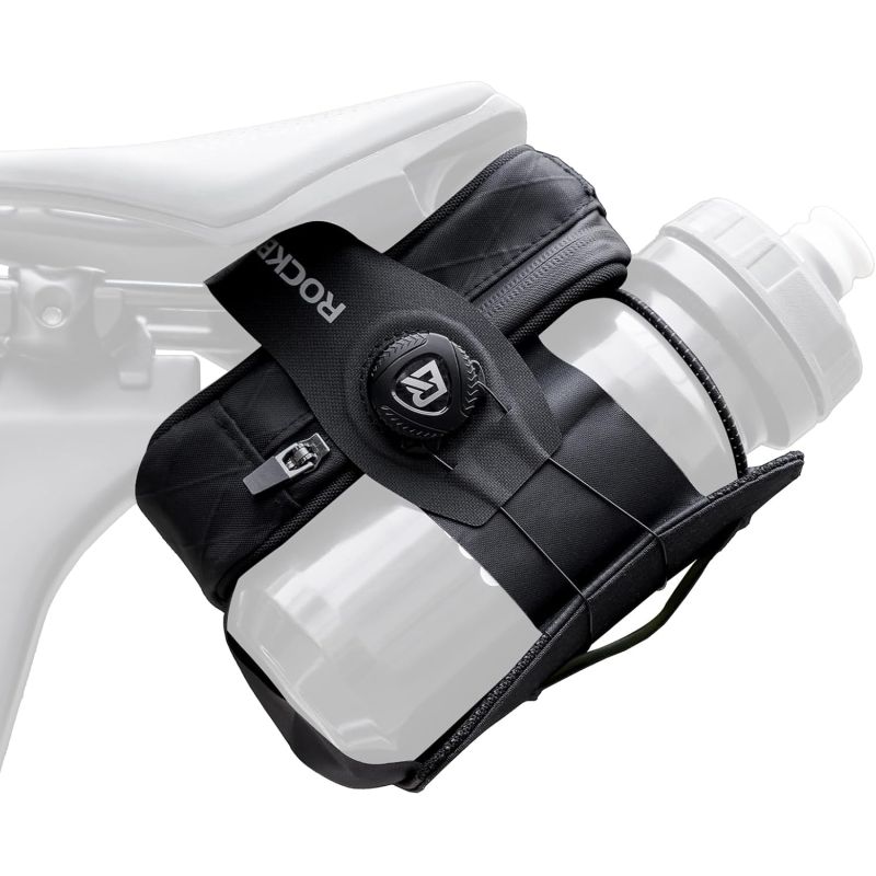 Equipped with a bottle holder and elastic strap for secure attachment. A non-slip rubber base prevents the bottle from sliding. Reflective elements increase visibility at night. Compatible with rear bike lights for added safety.