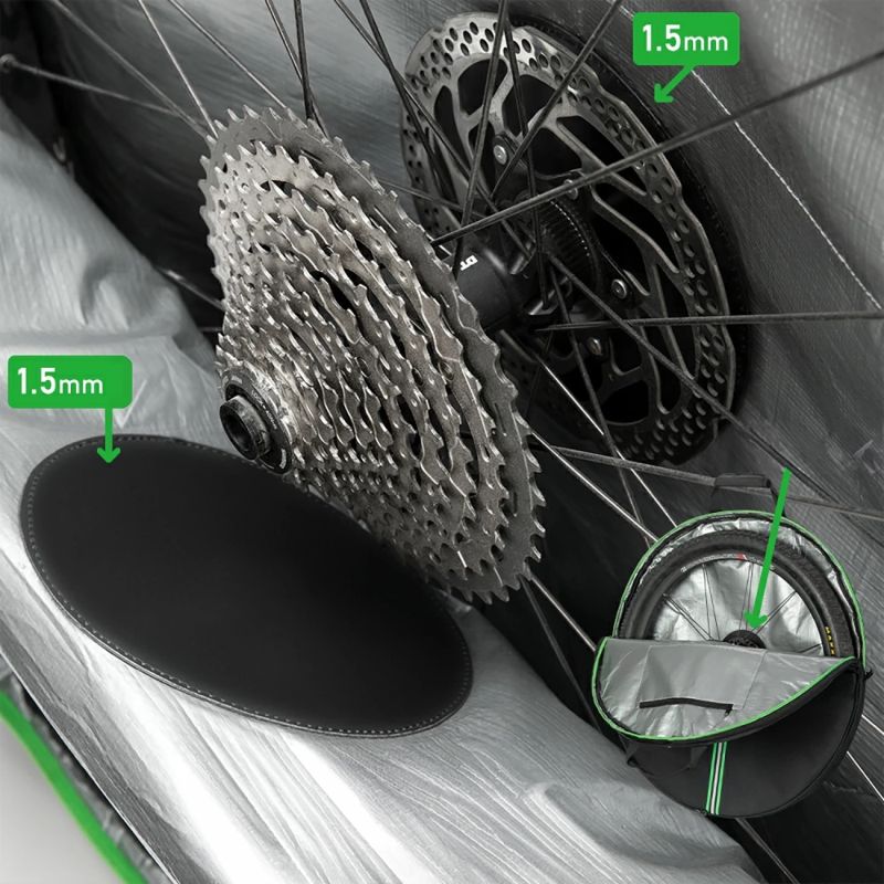 - Effective wheel protection: a cushioning layer made of PE foam protects the rim and components against impacts and scratches.