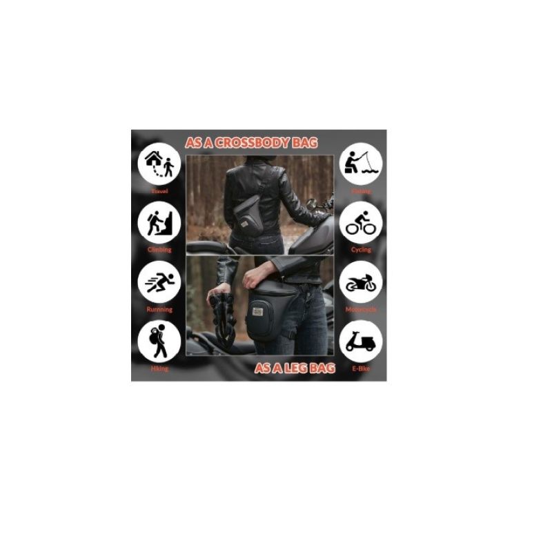 The Rockbros motorcycle bag can be used in two ways: as a hip/thigh bag or a shoulder bag. Adjustable straps allow for easy customization.
