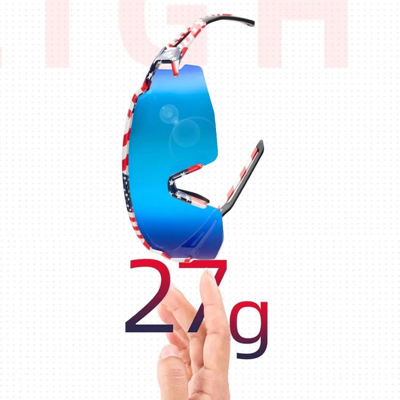 Rockbros Polarized Cycling Glasses with UV Protection and Corrective Insert Blue Lenses - USA Pattern - White