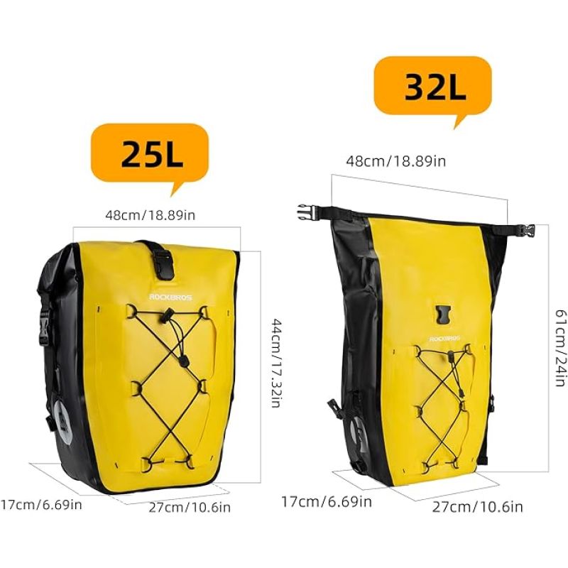 【Large 25L-32L Capacity】This bike bag has a 25-32L capacity that can store jerseys, pants, jackets, shoes, tools, and more. Perfect for longer rides, this bag features an external mesh pocket for easy access to frequently used items like raincoats. The main compartment also features internal pockets for more storage.