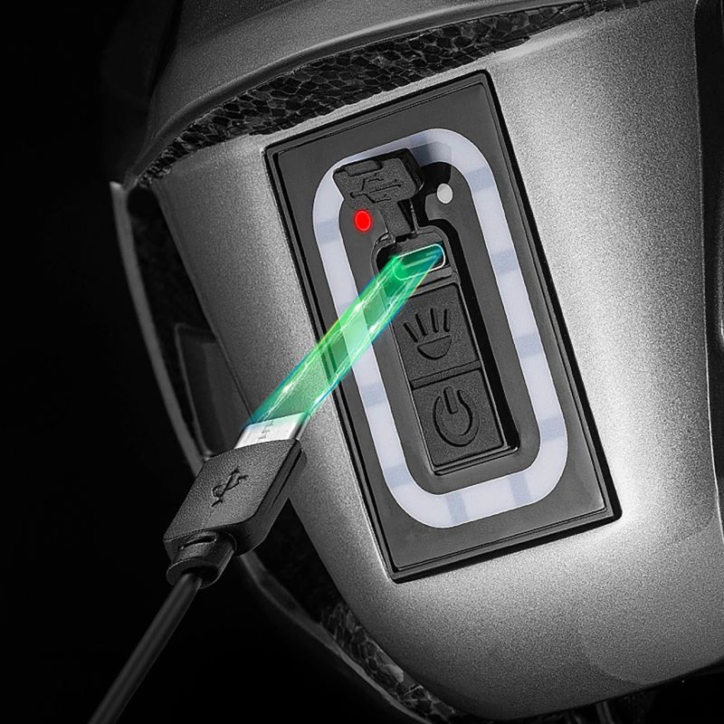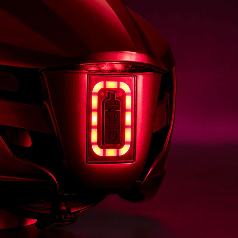 The helmet is equipped with a front light, side warning lights and a rear signal light, which increase the cyclist's visibility from various angles, so other road users can more quickly notice their presence on the road.
