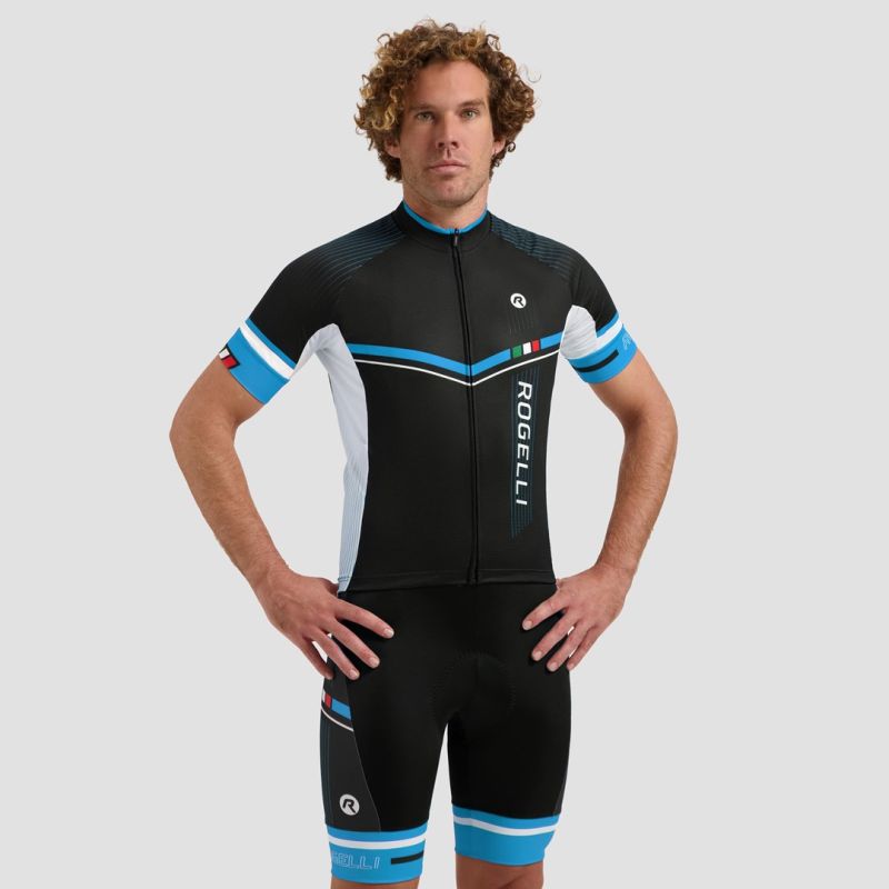 This men's summer cycling jersey is part of the TOP range from the Italian Rogelli collection. The Golfa fabric used was developed specifically for high-temperature conditions – its fine-knit construction ensures excellent sweat wicking. The full-length zipper is concealed within the jersey and ends in a low collar. The side panels, armpits, and sleeve hems are lined with breathable mesh for enhanced ventilation. A silicone stripe secures the jersey to the body at the bottom. A spacious, three-piece pocket at the lower back is a must-have. Admire the design and functionality of professional cyclists' jerseys. We recommend pairing this jersey with the Gara Mostro shorts from the same series.