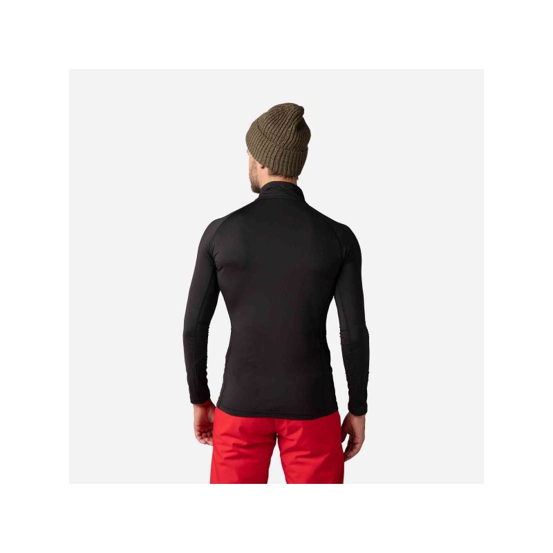 The first layer of clothing, closest to the body. The Rossignol Classique Clim men's half-zip top is made of stretchy, non-restrictive material that provides excellent protection against the cold. Its full stretch allows for freedom of movement, allowing you to enjoy complete freedom of movement during physical activities such as skiing or snowboarding. Furthermore, this thermal top provides optimal warmth in all weather conditions, making it suitable for a variety of outdoor activities in colder weather. The material of this top is made of technical fibers that effectively wick moisture away from the skin, keeping you dry and comfortable even during intense exertion. Quick-drying properties help maintain body temperature and minimize the risk of chafing, while the zipper flap protects against irritation and provides additional comfort.