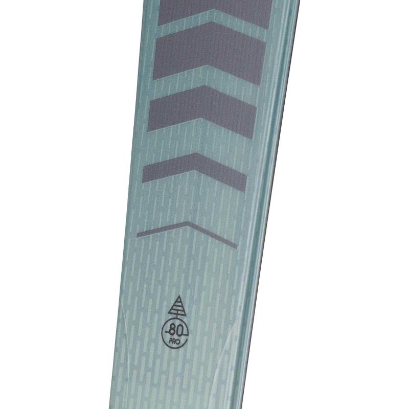 The ski's construction is based on a very lightweight paulownia wood core combined with the Aero Profile construction to optimize the ski's weight without sacrificing grip and skiing dynamics. Thanks to its unique construction, sidecut, and 80 mm width underfoot, the skis are easy to control and highly versatile. They perform well in relatively deep snow and on hard snow when skiing on the slopes. The entire construction is reinforced with fiberglass, with emphasis on the ski's critical areas, making the skis torsionally stiff and sufficiently firm for off-piste skiing and climbing.