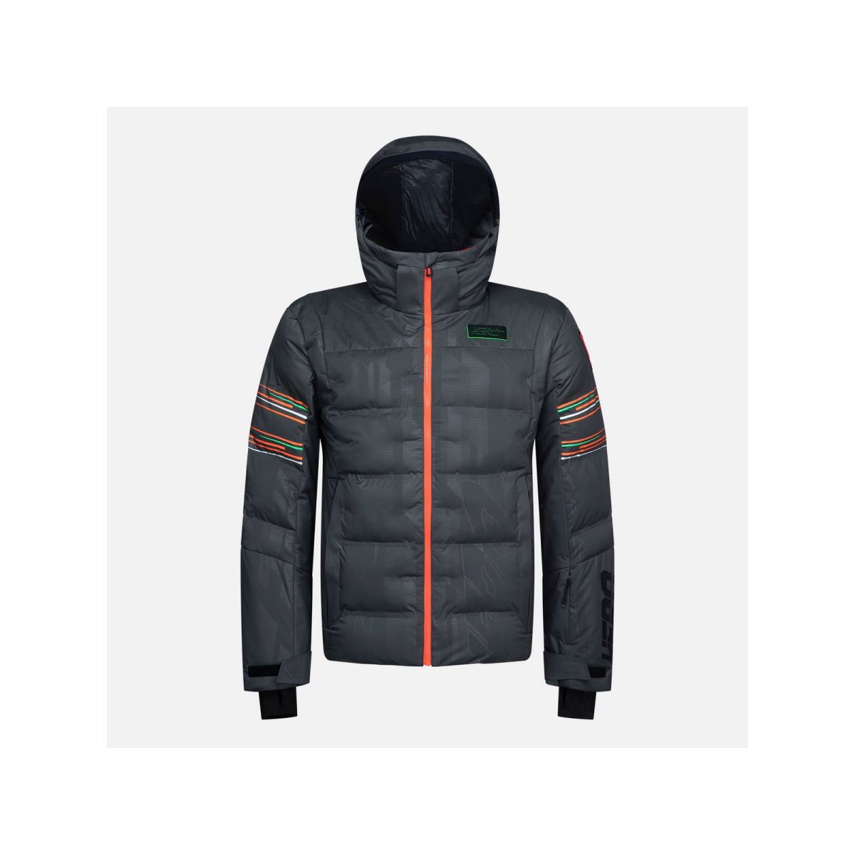 A men's jacket inspired by the style of the best Alpine World Cup-winning athletes, the Rossignol Hero Depart Ski Jacket captures the spirit of competition and speed. Whether you're racing against friends or a stopwatch, this exceptionally durable, wind- and frost-resistant jacket delivers. Bonded seams prevent leaks, while premium synthetic insulation makes the jacket comfortable, warm, and as lightweight as down. It features a detachable hood, allowing you to adjust it to suit the weather and your individual style. Details like the powder skirt, thumbhole cuffs, and ski pass pocket were designed in collaboration with top alpine skiers. The Hero graphic reflects Rossignol's passion for speed and precision in every detail.