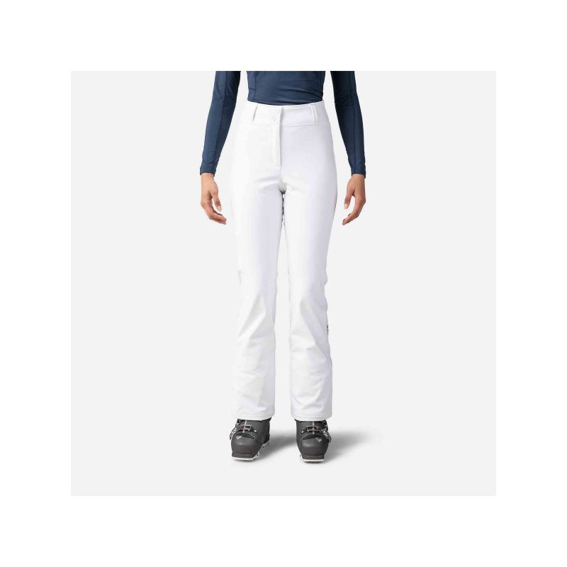 The women's Rossignol Soft Shell Ski Pants provide comfort and natural freedom of movement on any terrain. They feature an incredibly comfortable, fitted cut that flatters the feminine silhouette, while the flared lower legs are designed to fit over boots. The pants are made of a stretchy, waterproof, and breathable fabric that protects against cold, wind, and moisture. The interior is lightly brushed for added warmth.