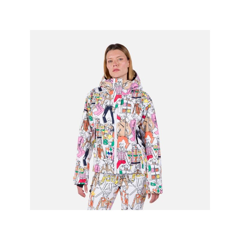 The Rossignol Sublime Stretch Ski Jacket for women is a stylish blend of alpine spirit and urban chic, resulting from the latest collaboration with French designer Jean-Charles de Castelbajac. A vibrant blend of graphics, created specifically for this collection, gives the jacket a unique character. This jacket offers comfort in all conditions thanks to low-profile insulation that effectively insulates against the cold and a fully seam-sealed, waterproof construction that blocks moisture. Stretch fabric allows for freedom of movement, so you can easily conquer the slopes in JCC style.