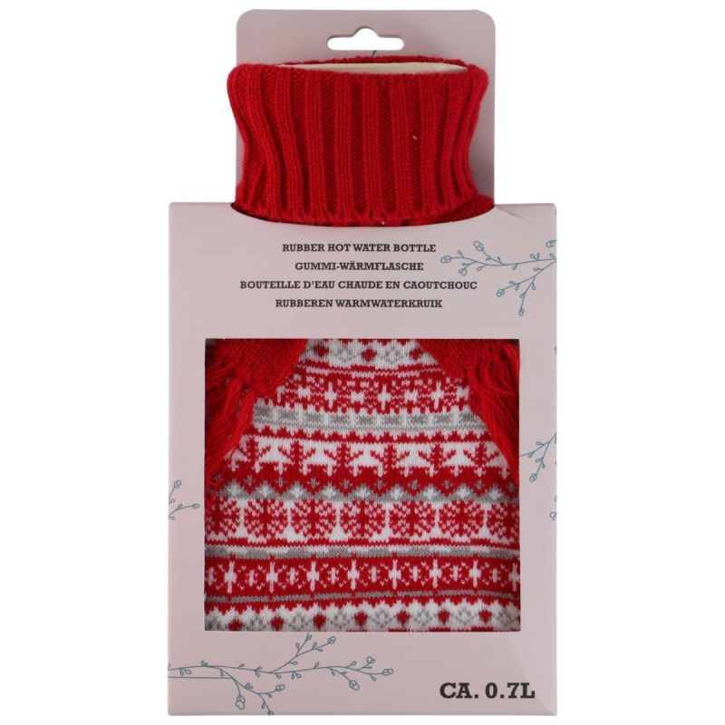 The ALPINA 0.7L NORDIC RUBBER HOT WATER BOTTLE WITH COVER combines practicality with a unique design. It provides natural, electricity-free warmth, relieving pain and tension, while also featuring a wintry, Nordic design. With a small capacity of 0.7L, it's lightweight and perfect for holding in your hands, under a blanket, or in bed.