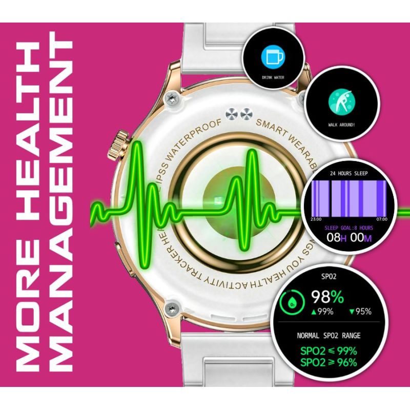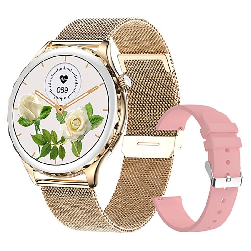 Imagine a rushed morning—your coffee's cooling on the counter, your phone's constantly ringing, and you're trying to find a moment for yourself. You reach for the Rubicon , which delicately shimmers around your wrist with its gold mesh bracelet. On the sleek, round MULTI-touch TFT IPS full display, you can choose a watch face that reflects your mood with a single touch—whether it's classic elegance or a touch of modern minimalism.
