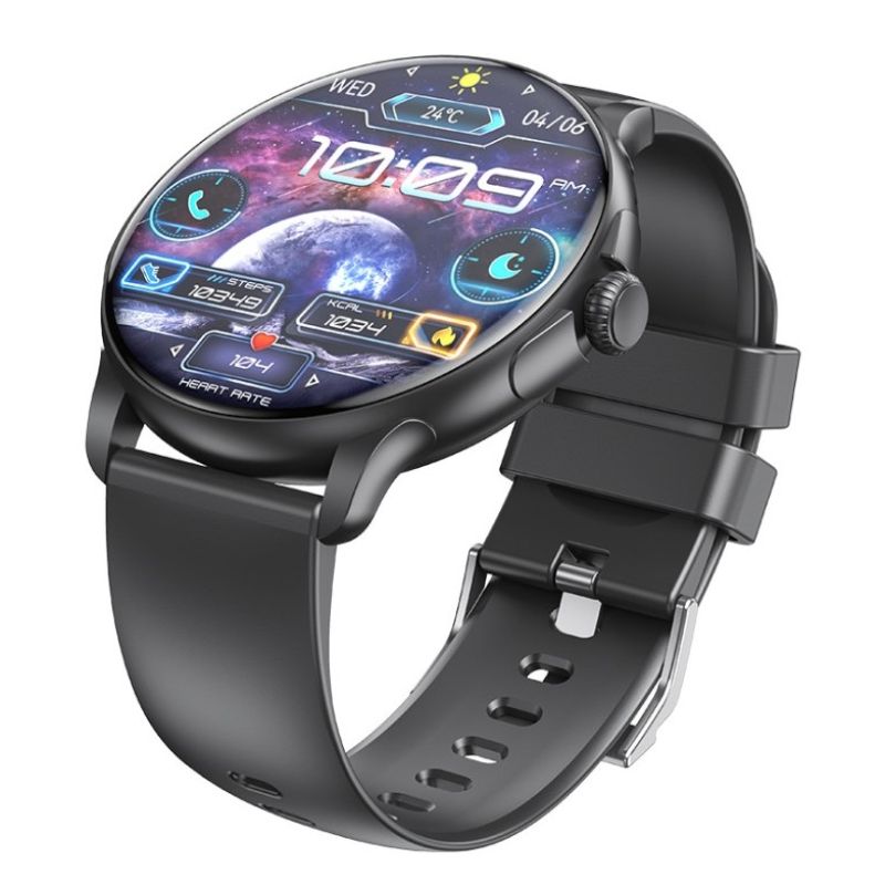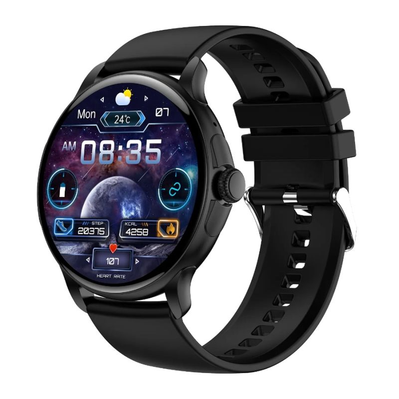 The morning starts faster than you'd like—your coffee's getting cold, your phone's somewhere in your bag, and your to-do list is already waiting. You reach for the Rubicon RNCF35 , which wraps your wrist in an elegant black mesh band , adding a touch of elegance to any outfit. A single glance at the spacious, multi-touch 1.46" AMOLED HD display is all it takes to check notifications, change the watch face to one that perfectly matches your mood, and stay up to date—without even pulling out your phone.
