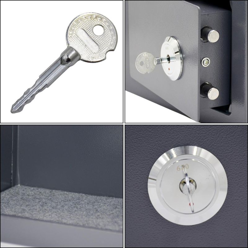 The safe features a classic key lock for easy and reliable security. Three keys are included, allowing for easy storage and providing additional security in case one is lost.