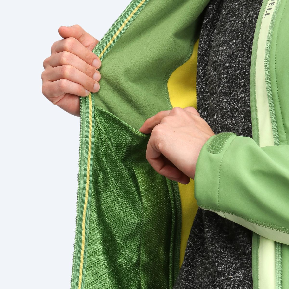 A classic women's softshell jacket with detachable sleeves (suitable as a jacket or vest). It features a soft fleece lining for improved warmth retention. The stand-up collar is adjustable with a drawcord. Features: Weight: 500 g Color: Green/Chlorophil Material: Stormwall 2L 215 performance, DWR finish Technical, ergonomic women's cut Extended sleeves and back Velcro-adjustable cuffs Zippered sleeve pocket Two side zippered pockets