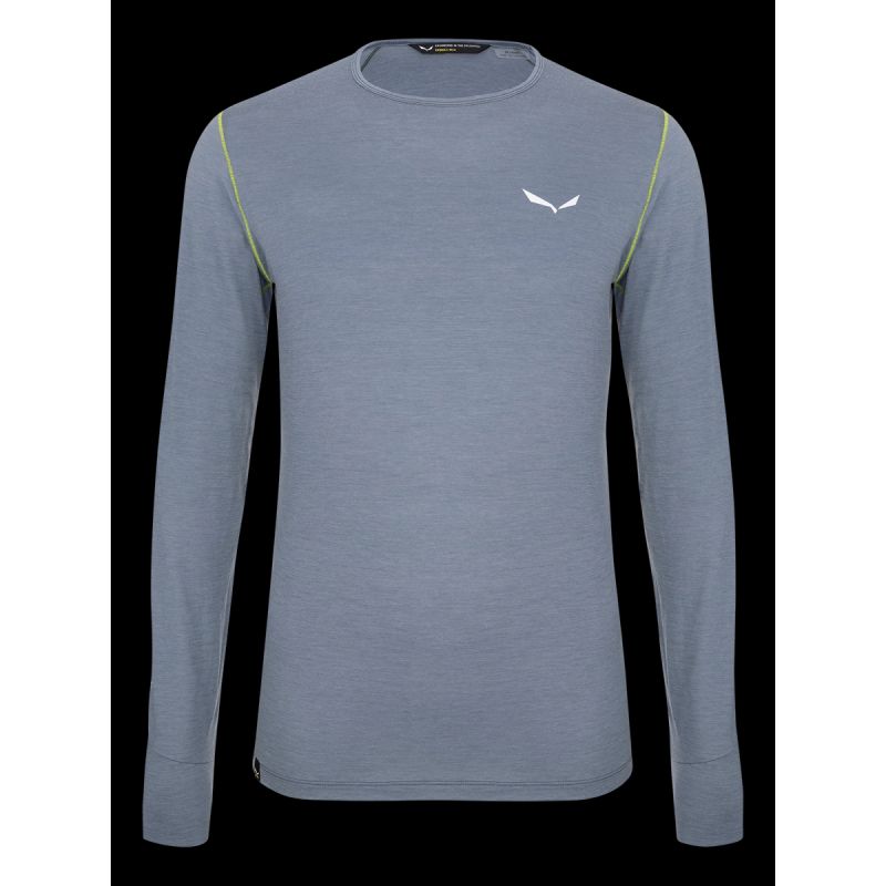 Men's long-sleeved t-shirt made of functional merino wool (150 gsm). Perfect for speed hiking and trekking, this t-shirt provides natural breathability, supports body thermoregulation, and prevents odor buildup during intense interval exercise, keeping your skin warm and dry.