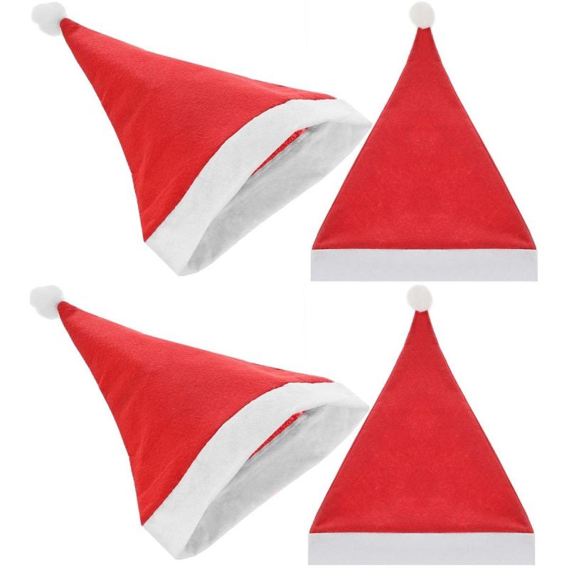 This set of 4 Santa Hats with Pompoms is a must-have Christmas accessory. The hats are soft and pleasant to the touch, topped with a fluffy white pompom and finished with a wide white band. Wearing these hats will easily bring the holiday spirit to your home with your family.
