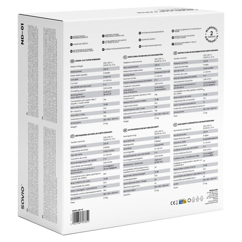 SAVIO ND-01 SHREDDER FOR DOCUMENTS