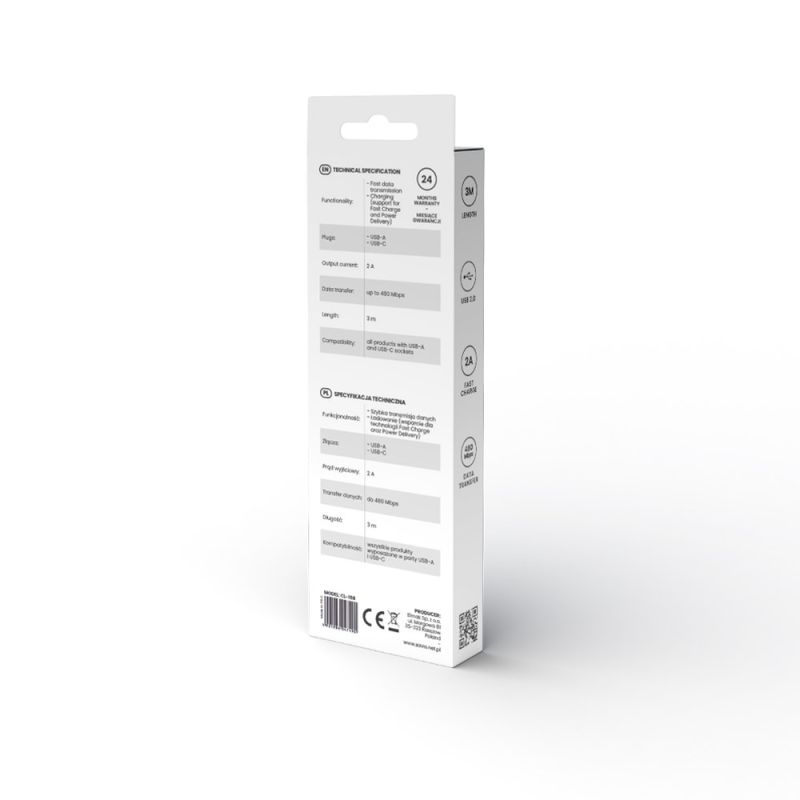 SAVIO USB-A – USB-C CABLE, 3 M, WHITE, CL-168