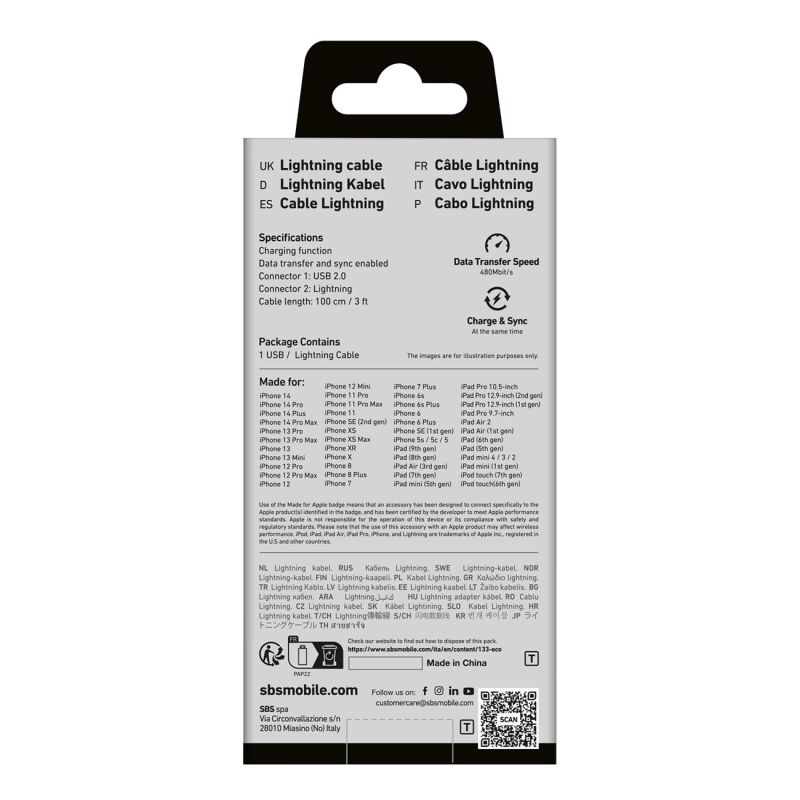 SBS TECABLEUSBIP589K USB-A - Lightning Cable 1m MFi Certified - Black
