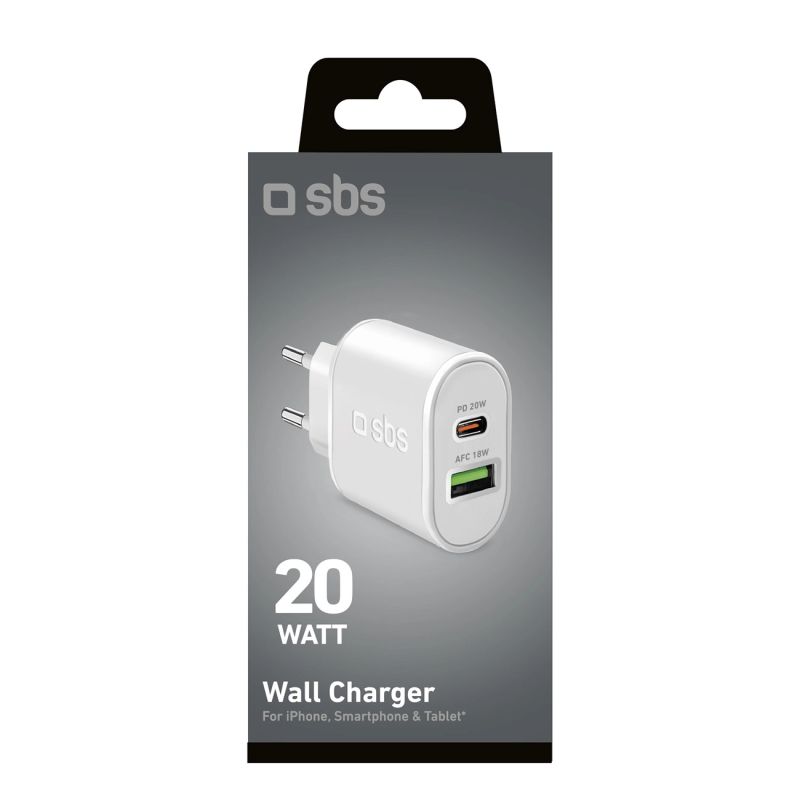 SBS TETRPD20W 20W USB-A USB-C Wall Charger with Power Delivery - White