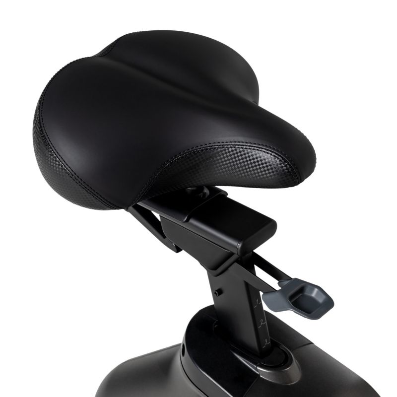 - The bike is equipped with all the necessary accessories and extras to make your workout enjoyable and comfortable, including adjustable handlebars, speakers, a USB port for charging devices, a tablet tray, a water bottle pocket, transport wheels for easy movement, and Bluetooth technology, which allows you to connect the device to a wireless telemetry belt for precise heart rate monitoring during your workout. The water bottle holder is conveniently located for easy access to your bottle while riding.