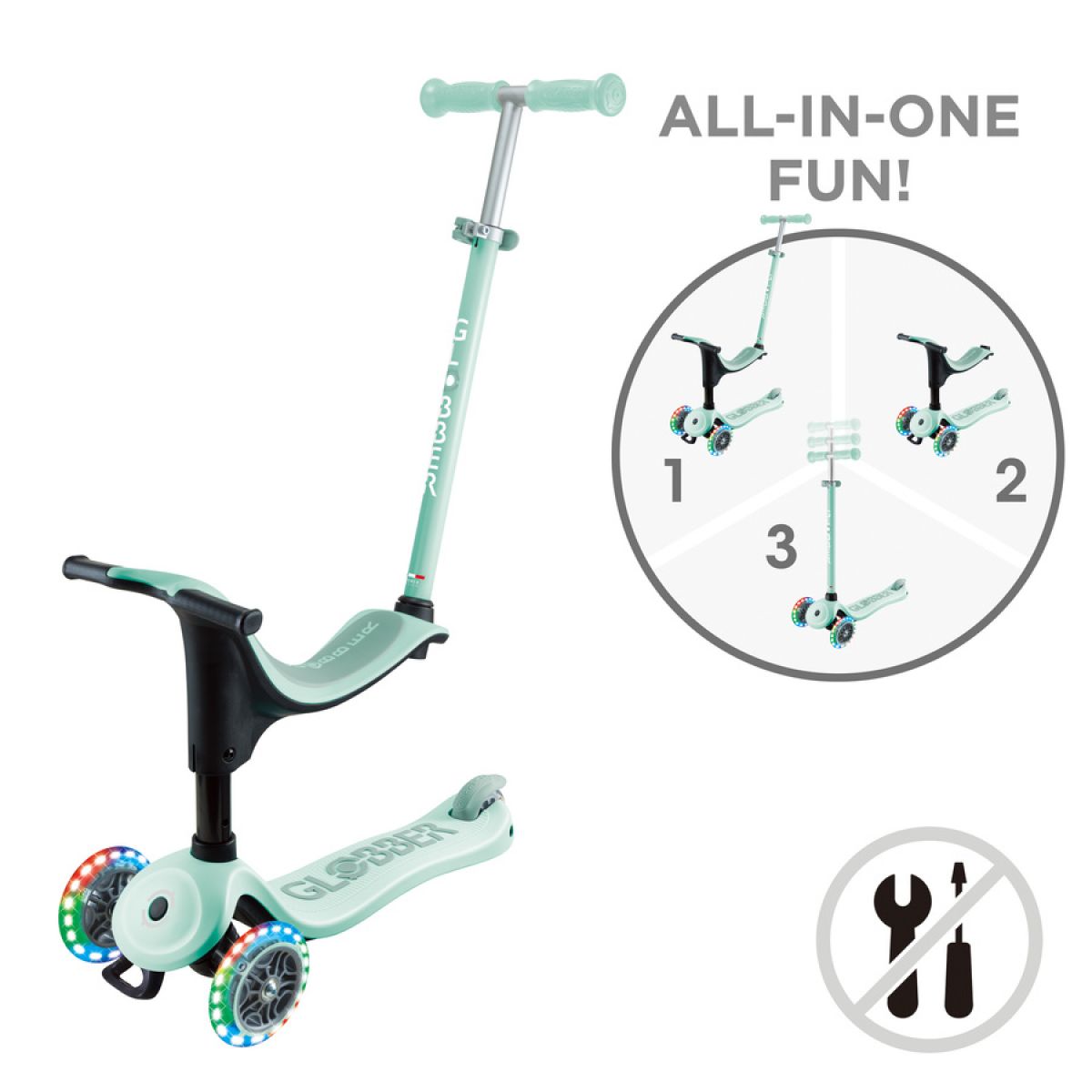 The GO-UP SPORTY scooter with a seat is a vehicle that you can adapt to your child's needs, which change as they develop.