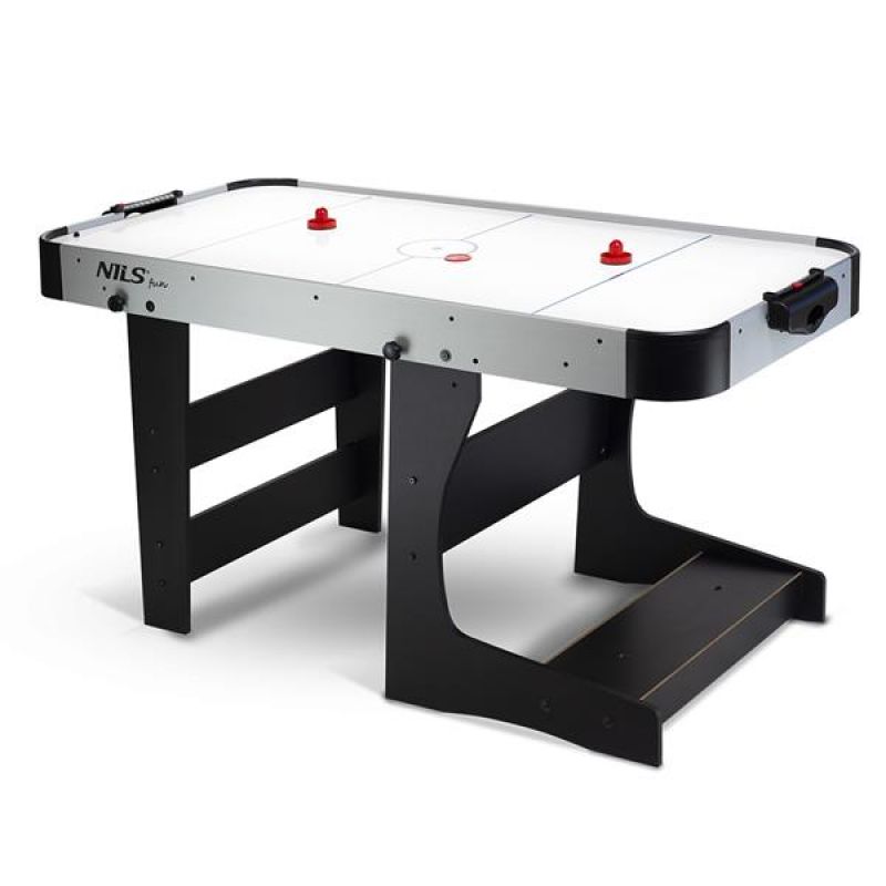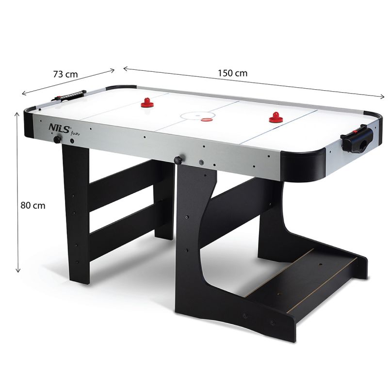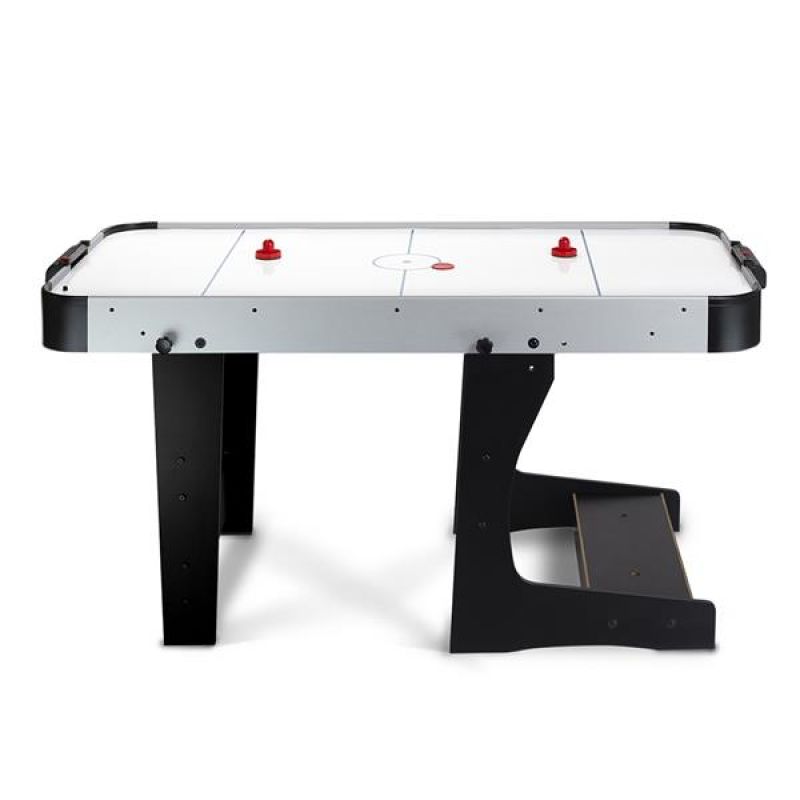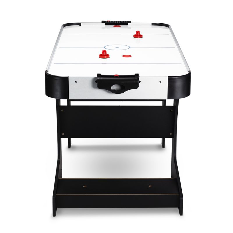 The table is made of high-quality, abrasion-resistant MDF, ensuring long-lasting use. The playfield is equipped with special air holes that facilitate puck movement and add dynamics to the game. A powerful battery is installed under the table.