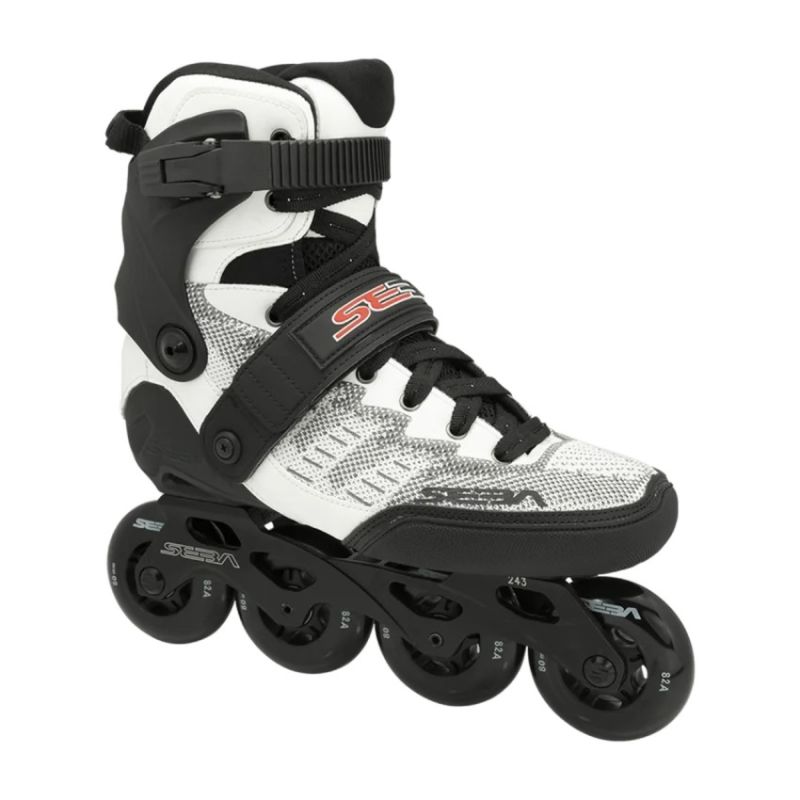 Seba GT 80 Freestyle Skates: Fitness Comfort and Freeride Control in One. The Seba GT 80 is a versatile freeskate inspired by the legendary High and High Light models. It combines the lightness and comfort of a fitness skate with the control and stability of a freeride skate, making it perfect for both urban skating and longer trails. It features a comfortable softboot construction with an inner shell that provides a snug fit and foot support. These skates maintain a high level of comfort even during long hours of skating. Key Features: Softboot Construction: A combination of comfort and support thanks to the anatomical padding and inner shell. Foot Stabilization: Lacing, a strong Velcro strap, and a buckle on the cuff provide a secure hold and control. Ankle Support: A rigid construction improves stability and push-off efficiency. X2R Aluminum Frame (165 mm): A short and agile design provides good maneuverability. Rocker Capability: Adjustable outer wheels (banana rocker) increase maneuverability and make learning to slalom easier. 80 mm / 82A wheels: A good balance between speed, grip, and vibration dampening. Frame adjustment: Adjustable to individual anatomy for better control. Universal use: Perfect for urban skating, fitness, and first steps in freestyle slalom. The Seba GT 80 is an excellent choice for those looking for comfortable yet precise skates for urban skating and developing their skills. TECHNICAL SPECIFICATIONS Intended use: Freeskate/Powerblading, Freestyle Slalom Frame: Adjustable X2R frame with 165 mm mount and 243 mm length Wheel size: 80 mm Wheel hardness: 82A Bearings: 608, Seba ABEC 9 Lacing system: Laces Type | Boot shell: Composite material Liner (inner sock) integrated Brake: None Upper closure: Buckle: 45-degree closure Velcro Axles: 8 mm Weight limit: -