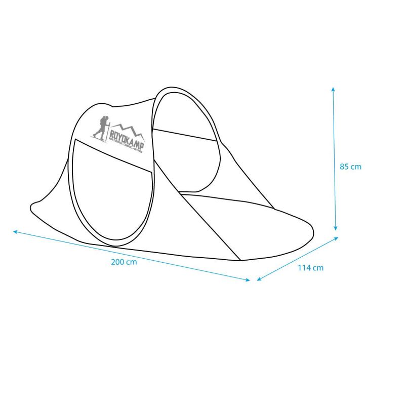- Internal dimensions of the unfolded tent: approx. 200 x 120 x 88 cm (L x W x H)