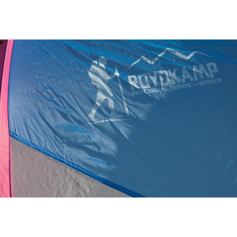 The ROYOKAMP SELF-PUTTING BEACH SCREEN TENT is perfect for all your trips to the seaside, lake, or camping. This self-pitching tent from ROYOKAMP is a high-quality product, measuring 120 cm wide, 200 cm deep, and 88 cm high, and packed in a convenient carry bag for easy transport and storage. Its fiberglass frame is lightweight and resistant to mechanical damage. The cover is made of strong 150T polyester, which protects against harmful UV radiation and provides a 400 mm water column . Numerous mesh inserts are placed on the sides, ensuring excellent ventilation inside.