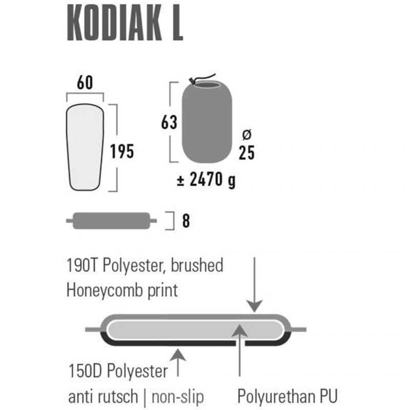 This self-inflating thermal mat with high-density foam provides insulation and comfort. The "Wave Cut" surface conforms perfectly to the body. The self-inflating mat is made of high-quality, non-slip brushed polyester fabric. The bottom is made of durable, non-slip polyester. The Kodiak self-inflating mat is equipped with a non-return valve. The mat comes with two compression straps and a stuff sack.