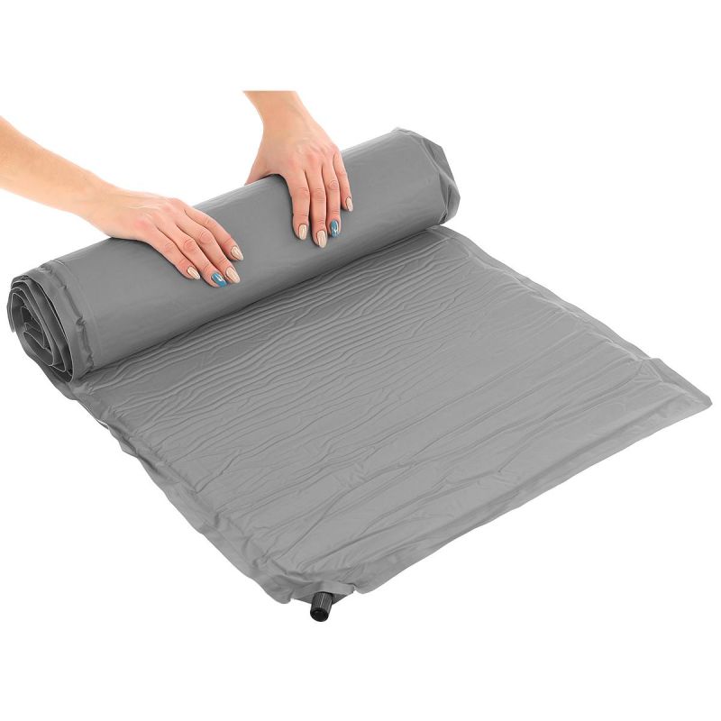 Thanks to the automatic inflation function, simply unscrew the cap and the mattress will fill with air and take its desired shape. Its dimensions when inflated are approximately 180 x 50 x 2.5 cm, making it suitable for use as a single bed. Roll it up to deflate it, tighten the cap, and you'll have a deflated mattress that can be stored back in its cover.