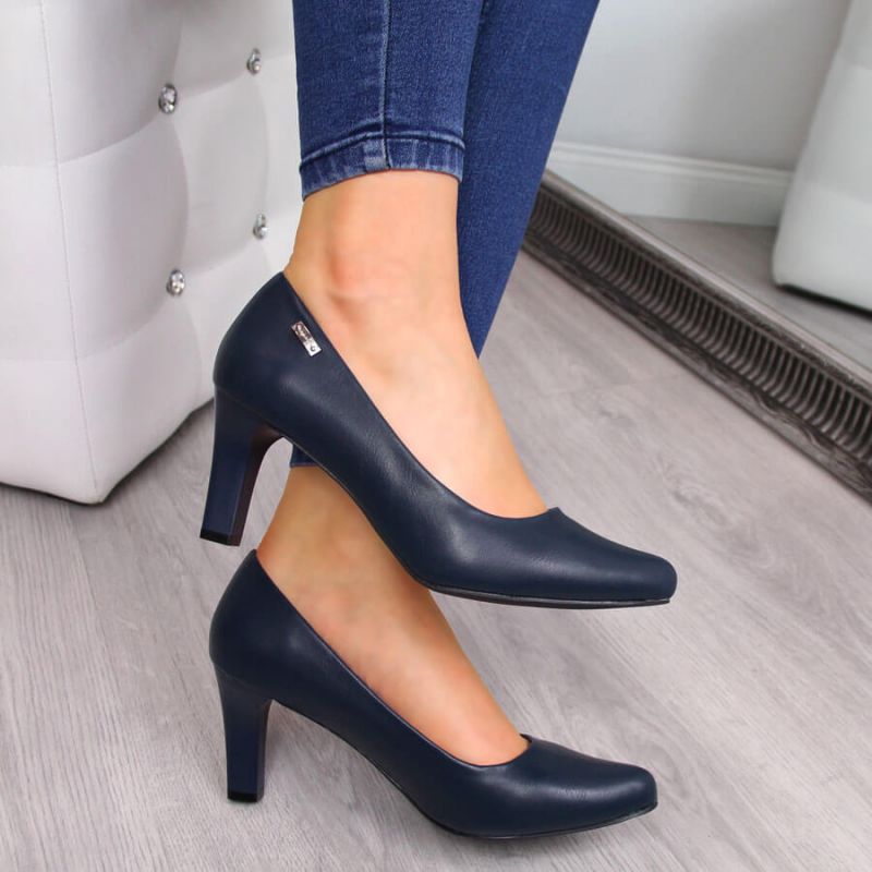 Sergio Leone navy blue block heel pumps