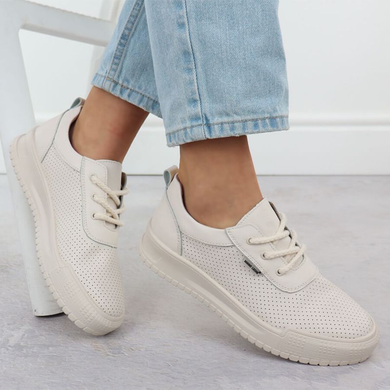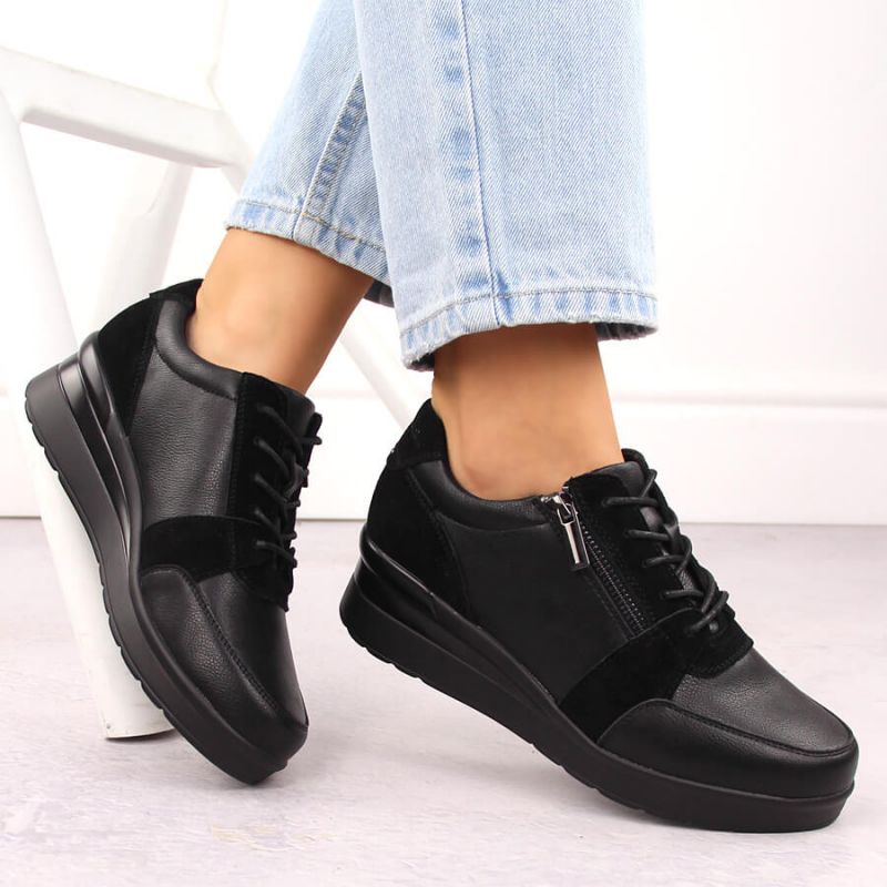 An absolute hit of the season! These women's sneakers are from the renowned Sergio Leone brand. These low-top shoes feature a comfortable wedge heel, ensuring the perfect complement to both casual and sporty outfits, ensuring complete comfort while walking.