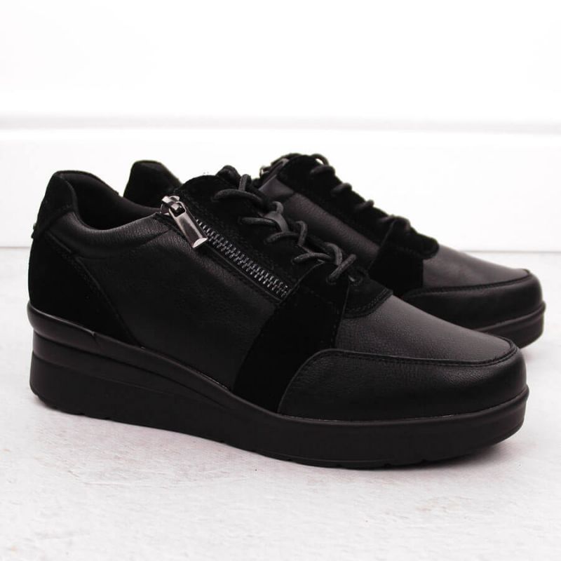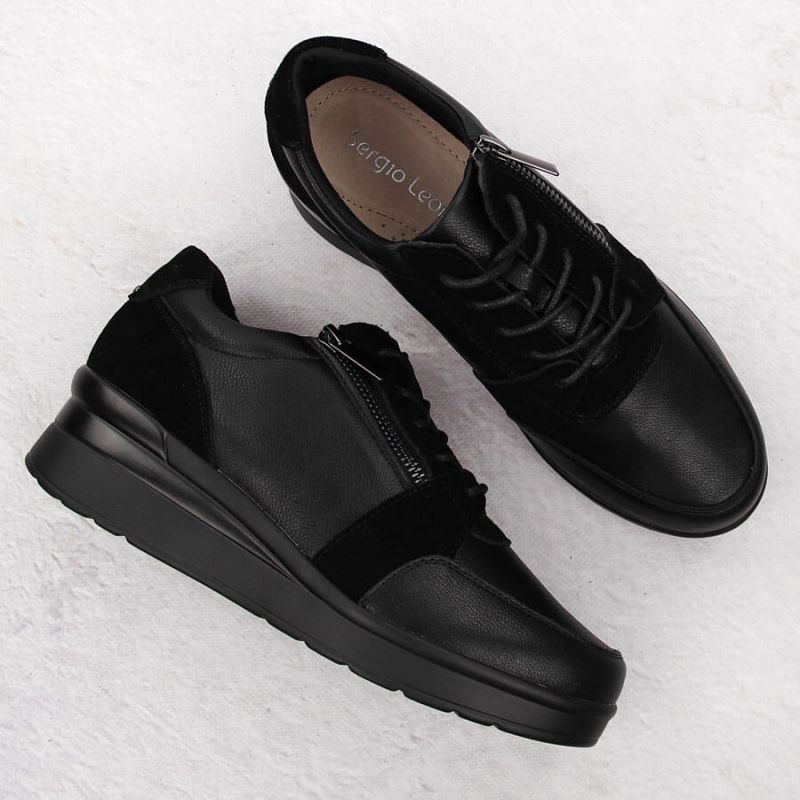 Sergio Leone PB236-S women's leather wedge sneakers, black