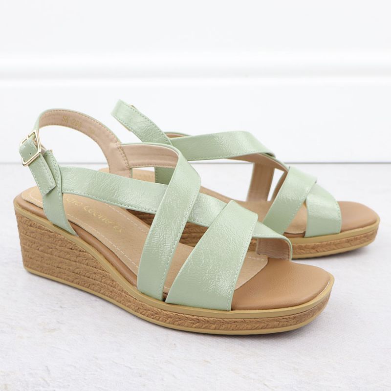 Sergio Leone SK298 women's patent leather wedge sandals in green