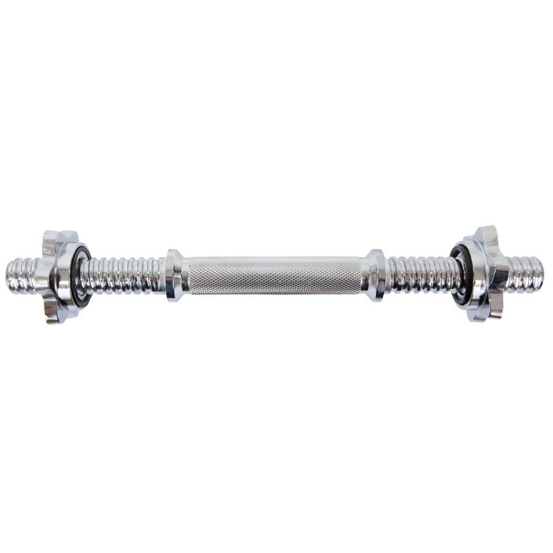 Made of high-quality chrome-plated steel , the bar is durable and resistant to mechanical damage , while the included rubber-coated clamps prevent friction and scratching of the plates. With a maximum load capacity of 50 kg, it will last for many years while maintaining its excellent appearance.