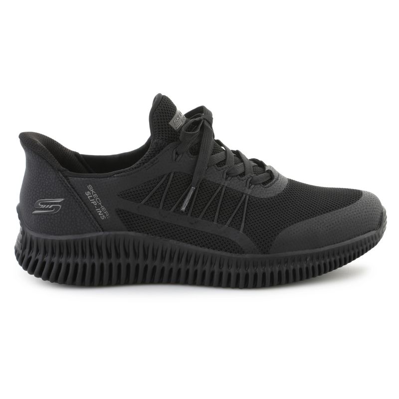 The Skechers BOBS Geo Lite Fixed Edge 118419-BBK Black men's sneakers are perfect for everyday casual wear. Designed with comfort in mind, Skechers Hands-Free Slip-Ins® technology allows for quick, hands-free slip-ons, for added convenience.