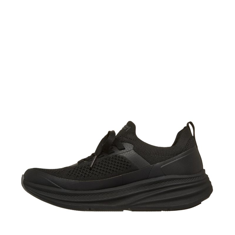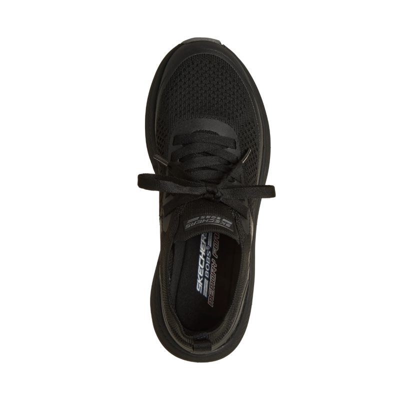 Skechers Bobs Skillz Too Vital Women's Shoes Black 117759 BBK. These Skechers women's shoes are comfortable sneakers for everyday wear. The Stretch Fit® knit upper conforms to your foot. They feature a slip-on construction with laces for a secure fit and stability. A Skechers Memory Foam footbed provides a flexible, treaded outsole for traction, and a 5 cm heel height gently lifts your silhouette. These shoes are machine washable and made with 100% vegan materials.