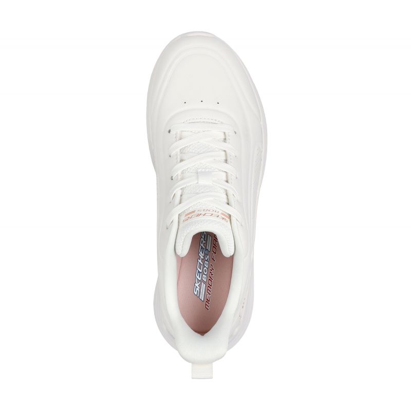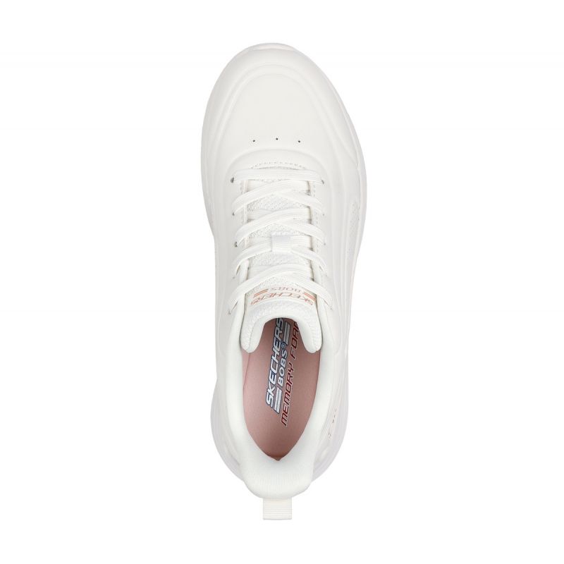 - This fashionable lace-up design features a durabuck upper with embossed and perforated details, a cushioned Skechers Memory Foam™ footbed.