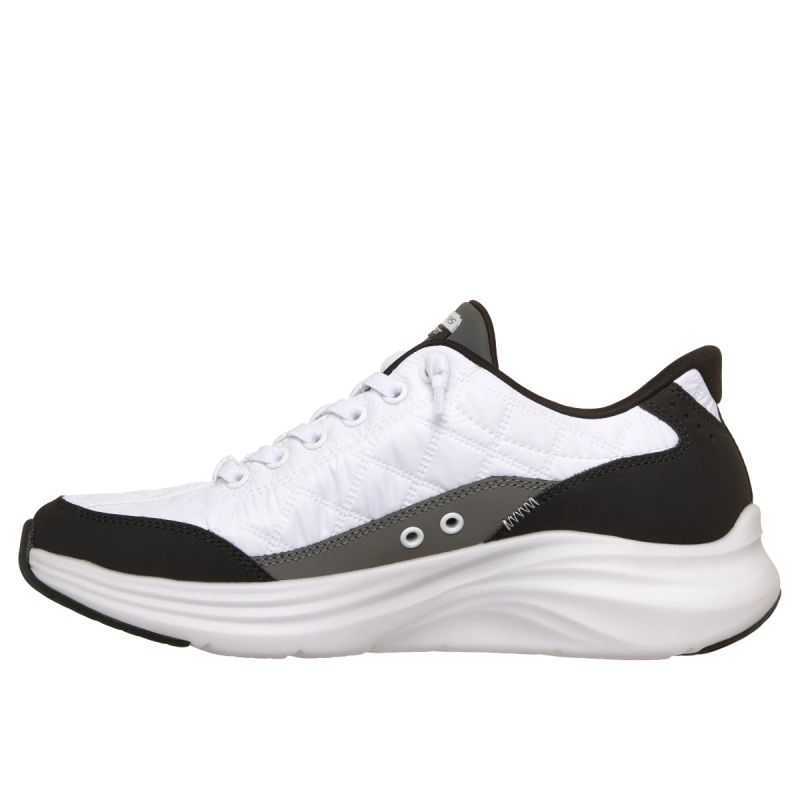 Quilted textile upper with synthetic overlays and Skechers No Tie Fit™ elastic laces never come undone